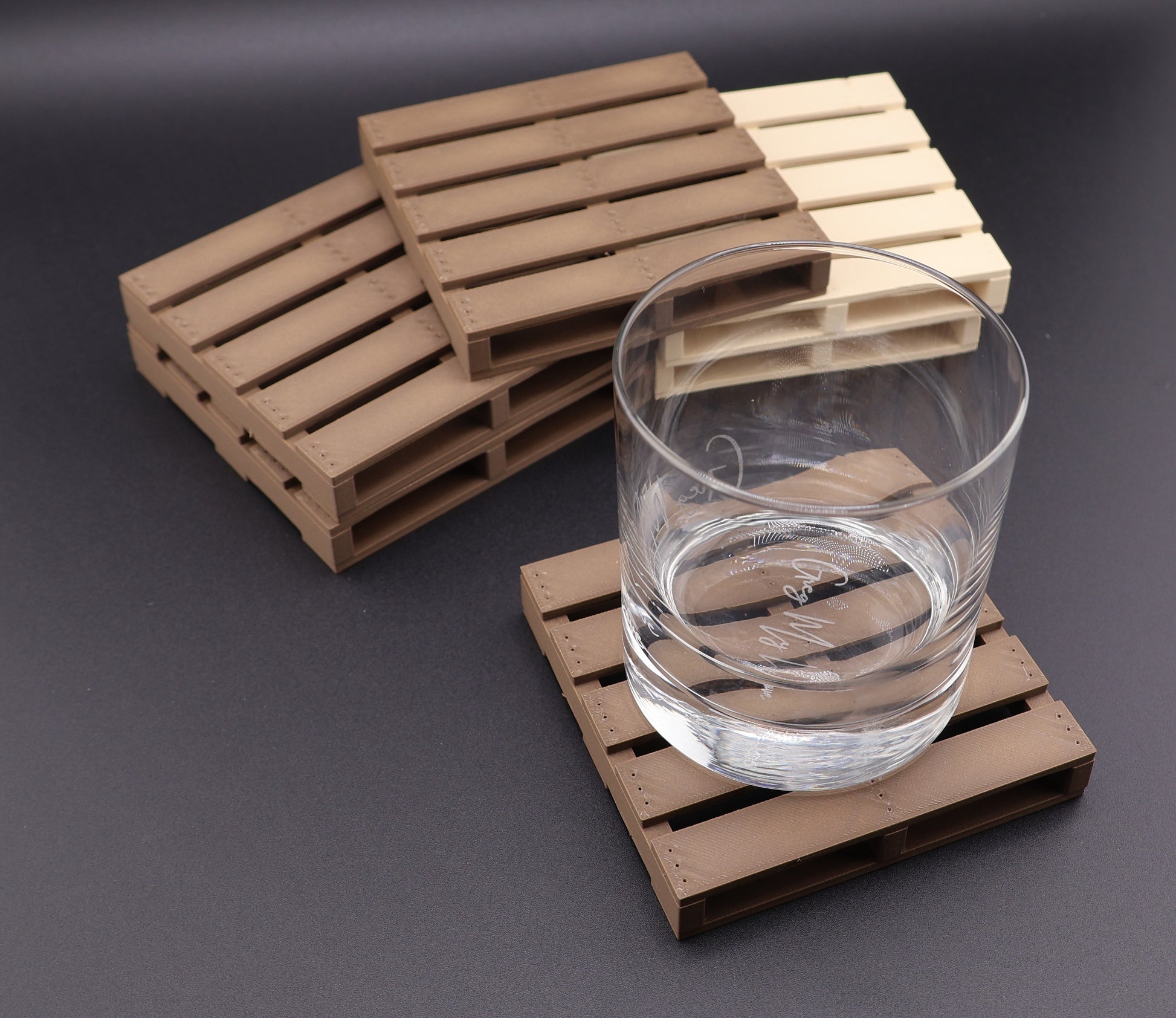Upgrade your drinkware game with our 3D Printed Pallet-Style Coasters—where industrial design meets natural elegance.