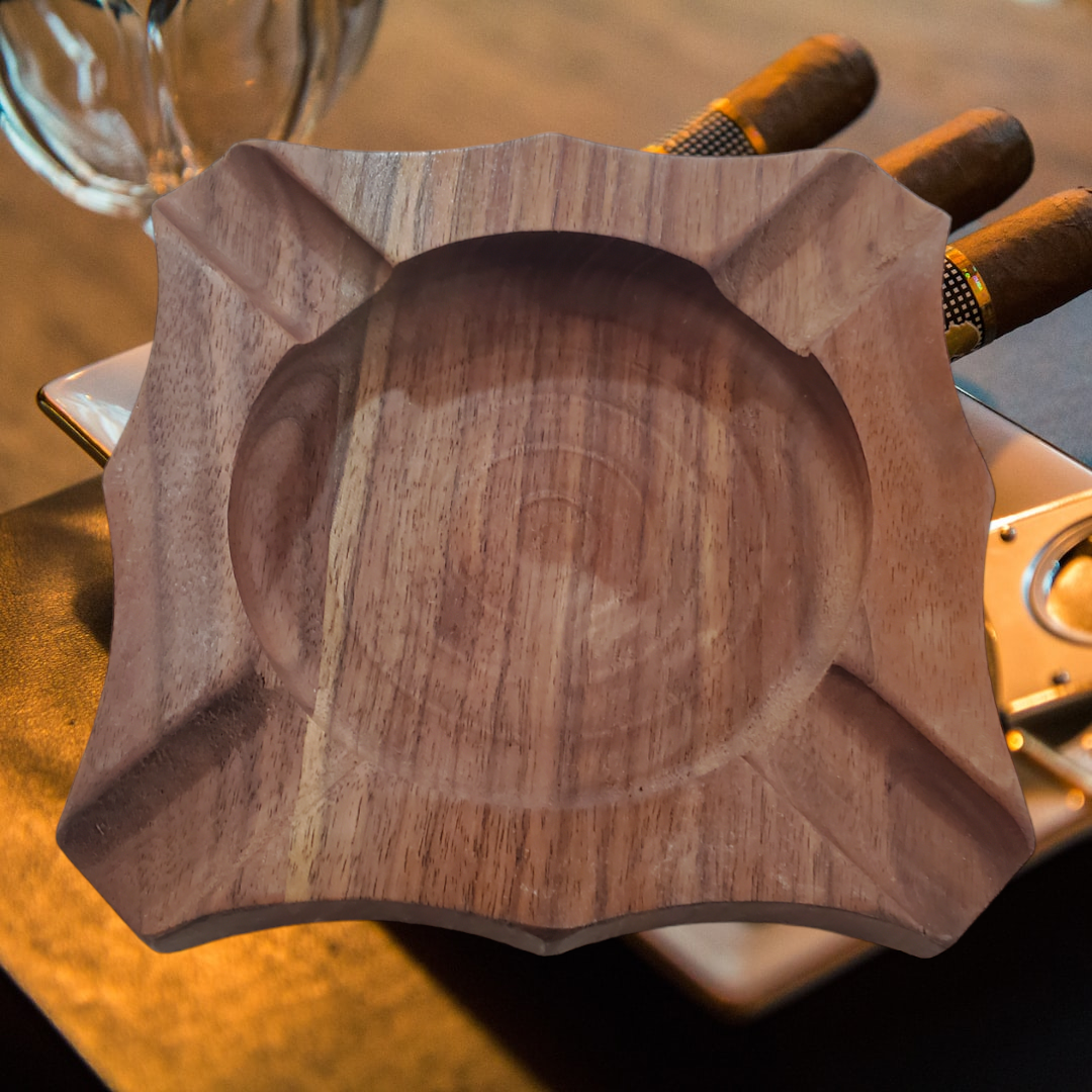 Introducing our Solid Walnut Cigar Ashtray – a masterpiece of craftsmanship and sophistication that enhances the pleasure of your cigar-smoking ritual. Meticulously crafted from premium solid walnut, this ashtray is more than just a practical accessory; it's a statement piece that exudes timeless elegance.